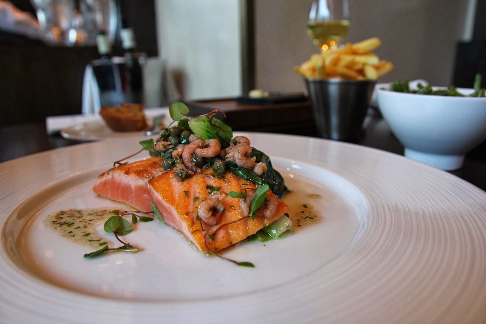 I decided to have the salmon for my main course- it turned out to be the richest, most flavoursome, decadent salmon I have ever eaten. It almost tasted as though it had been injected with brown butter. It was amazing. The tender shrimps, luscious green chard and capers showcased the salmon well and the drizzle of Admiral’s sauce (made up of butter, shallots, capers and lemon zest) signed off the best salmon dish I have ever had.